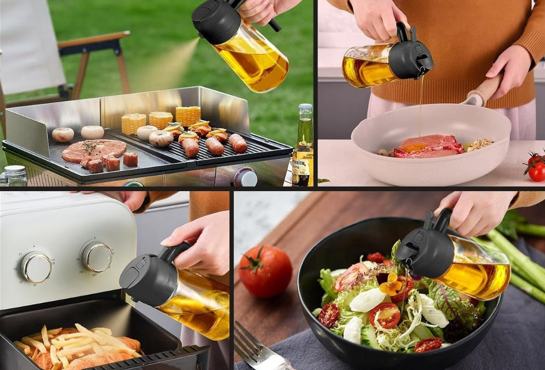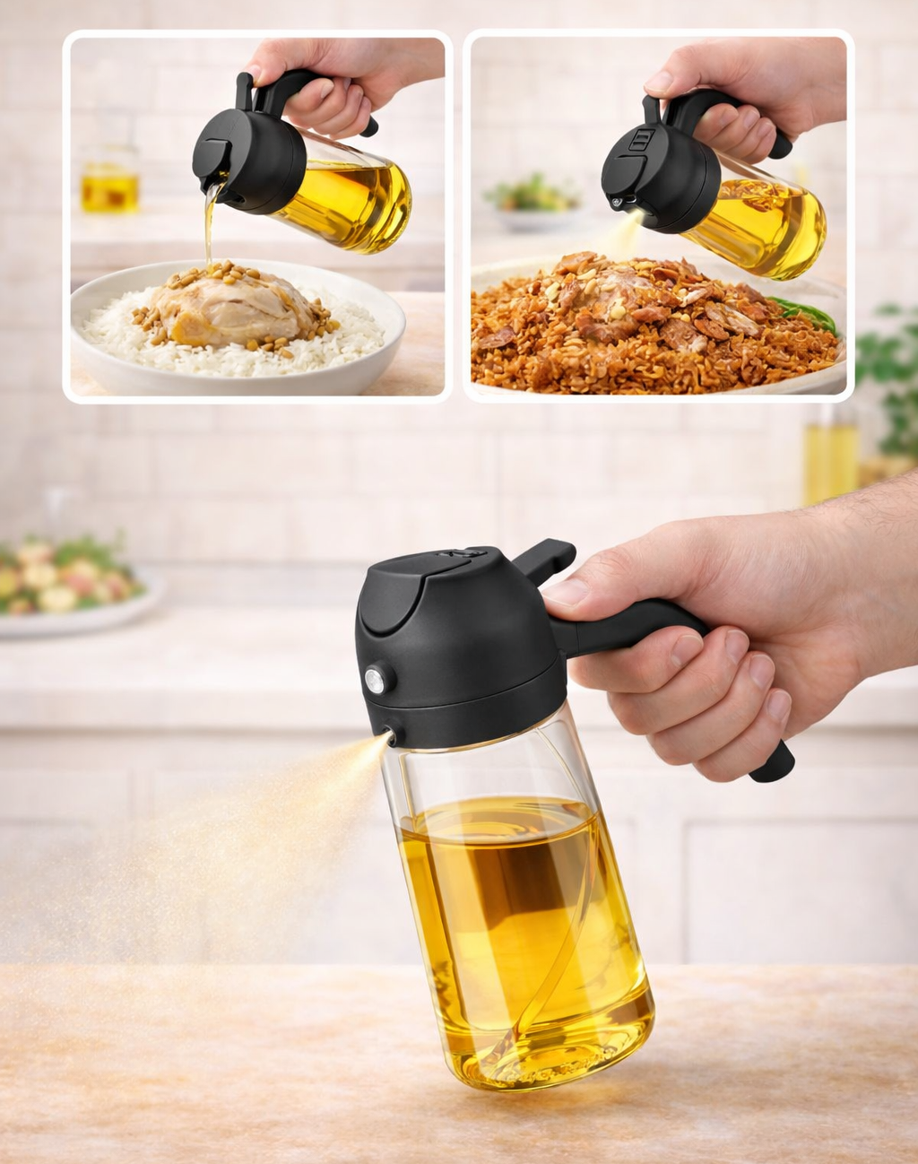 تحكم كامل في الزيت بدون فوضى… بخّة خفيفة أو سكب ناعم بضغطة إصبع.
